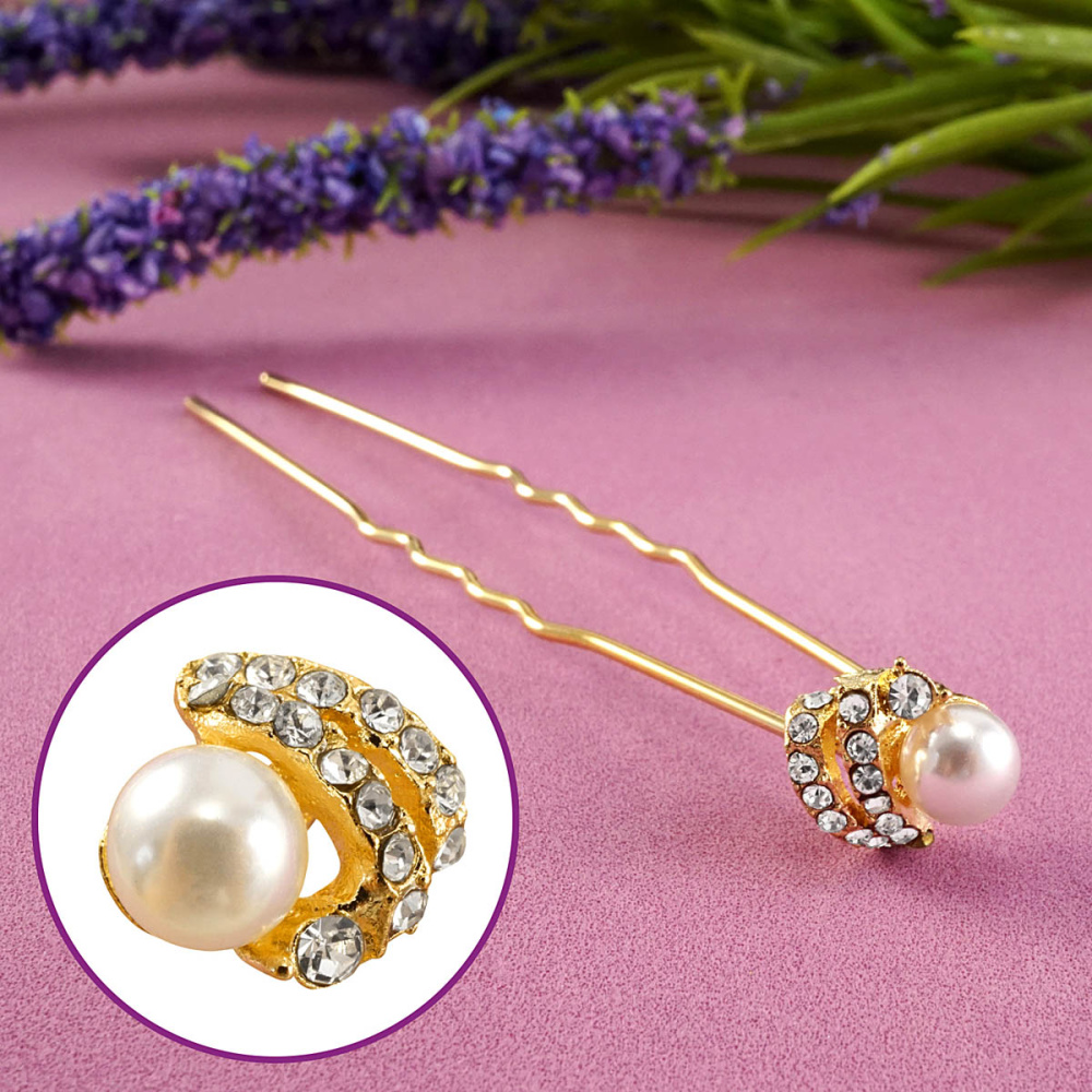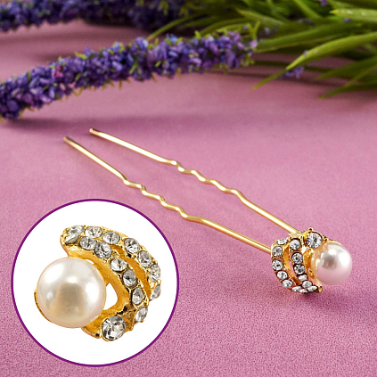 Шпилька для волос "Эста" 7см арт.2983892 белый/золото