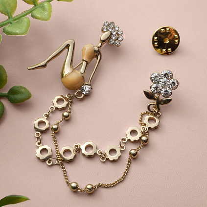 Брошь "Девушка" со стразами 150*25мм арт.A-350 золото