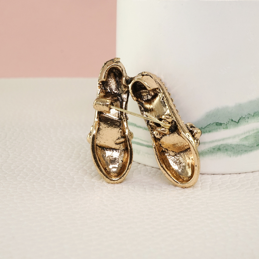 Брошь со стразами "Туфельки" 28*38мм арт.ИВ-696 ант.золото/микс