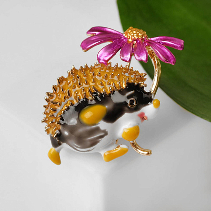 Брошь эмаль "Ежик с цветком" 40*35мм арт.5132053 золото/микс