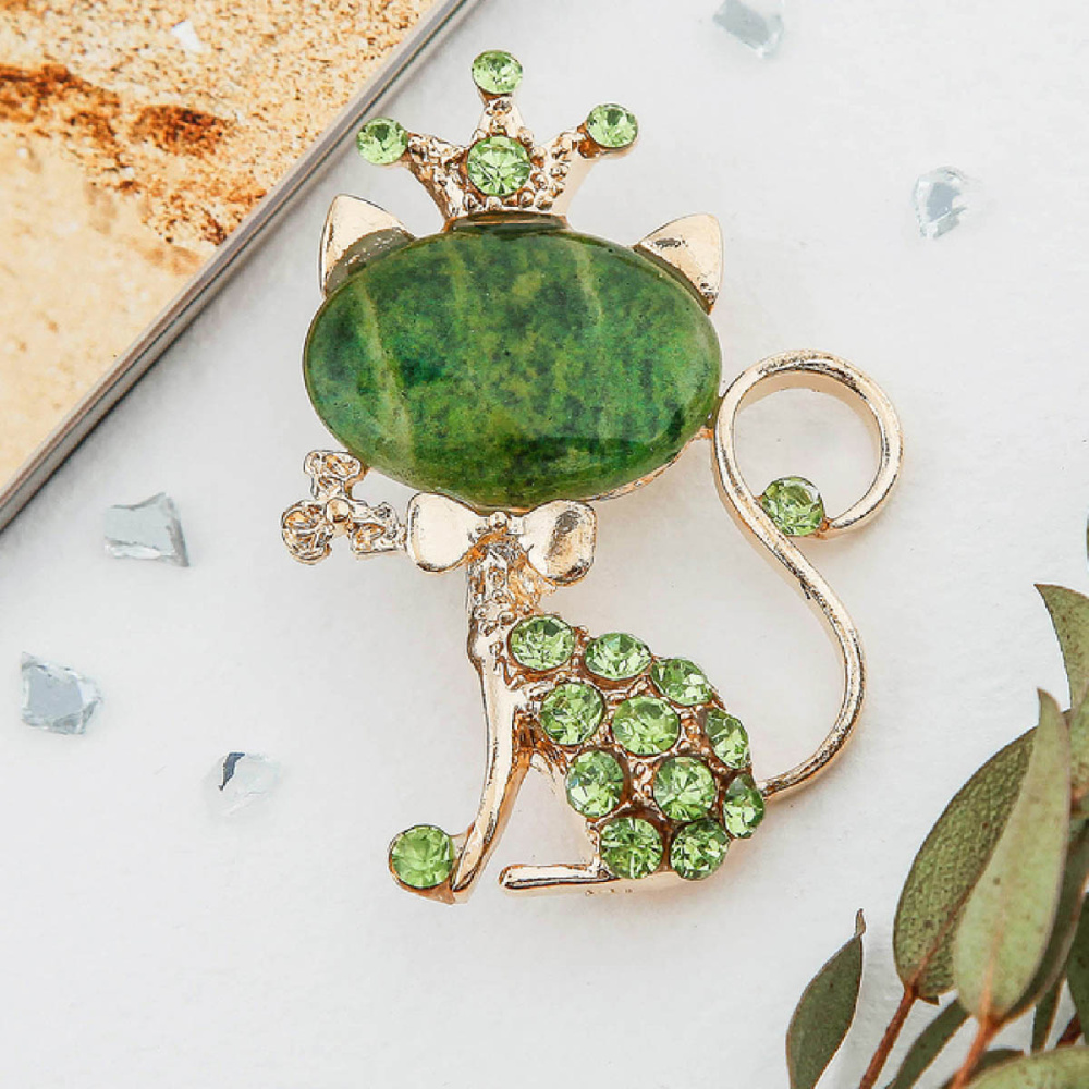 Брошь "Кошечка Малахит" 50*35мм арт.1354623 зеленый