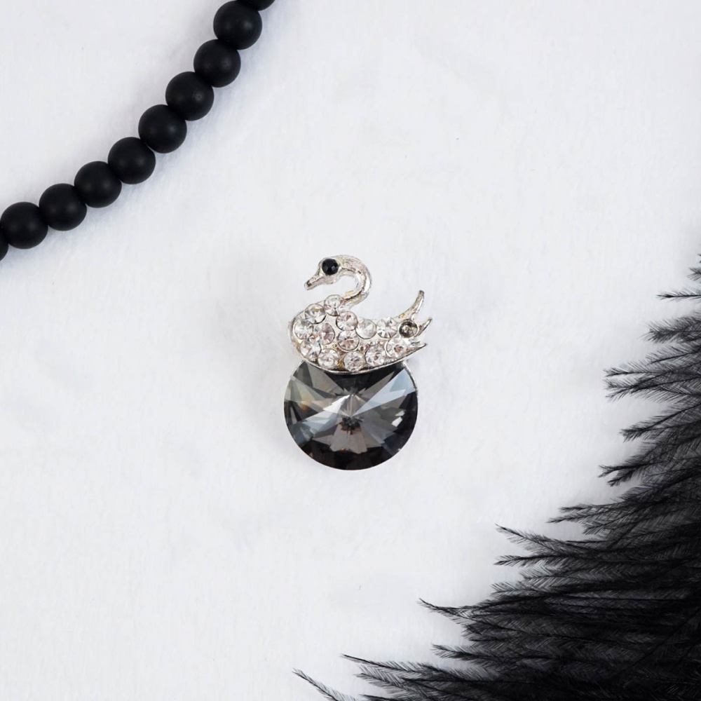 Брошь "Лебедь" со стразами 20*30мм арт.14 серебро/бл.черный камень