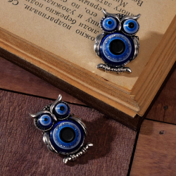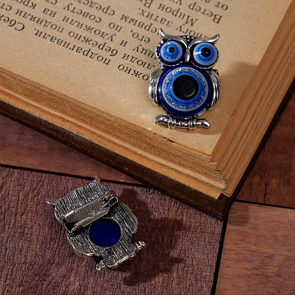 Брошь "Сова" глазки 25*20мм арт.6961463 серебро/черный/синий