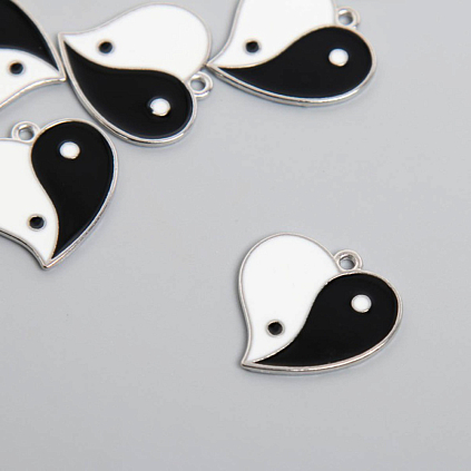 Подвеска "Инь-Ян. Сердце" 21*19мм эмаль арт.9300799 серебро/микс