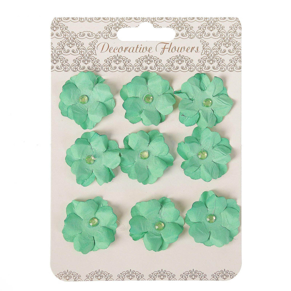 Цветы бумажные со стразой 3см арт.2504704 зеленый (9шт)