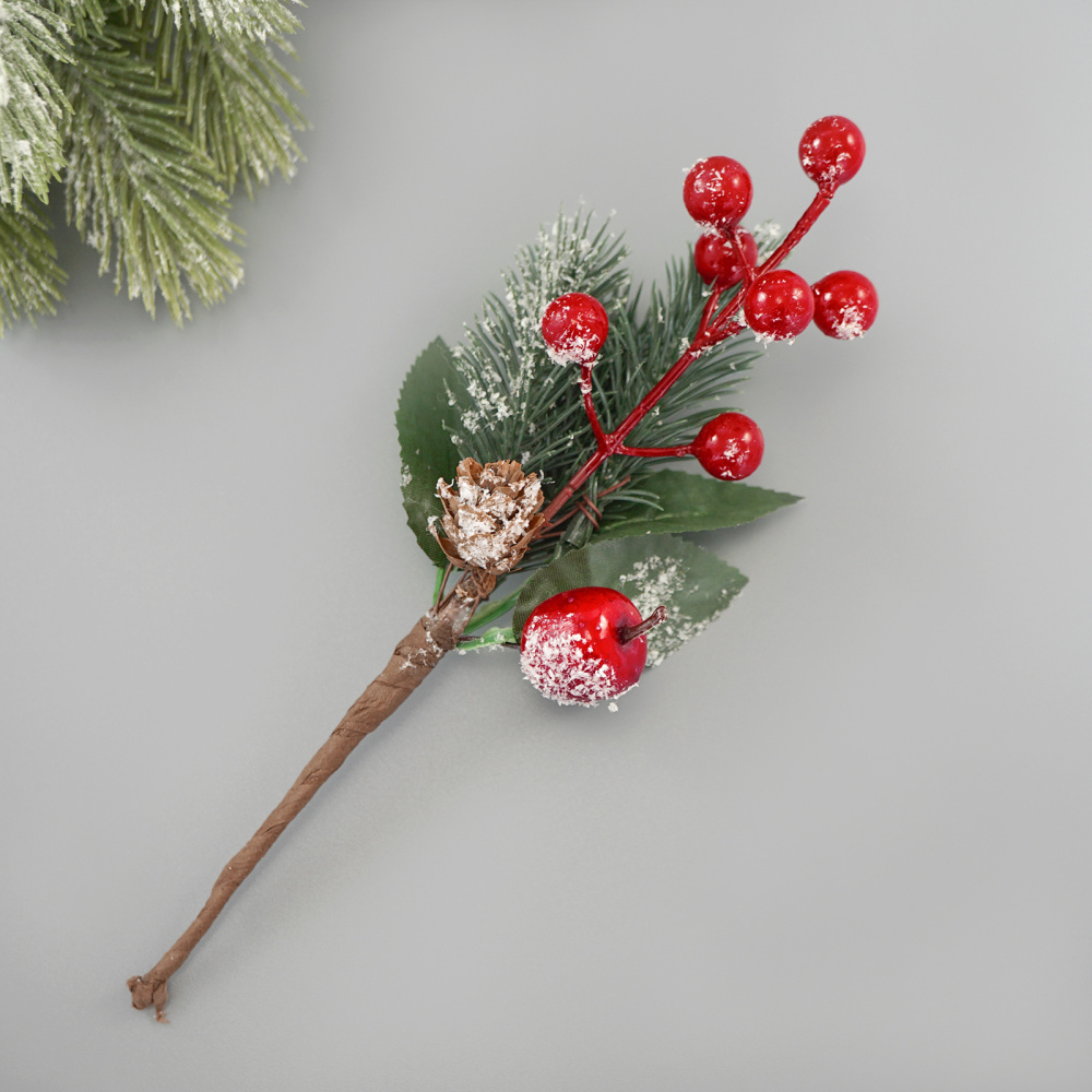 Ветка 20см с ягодами и шишкой арт.SF-6124 красный