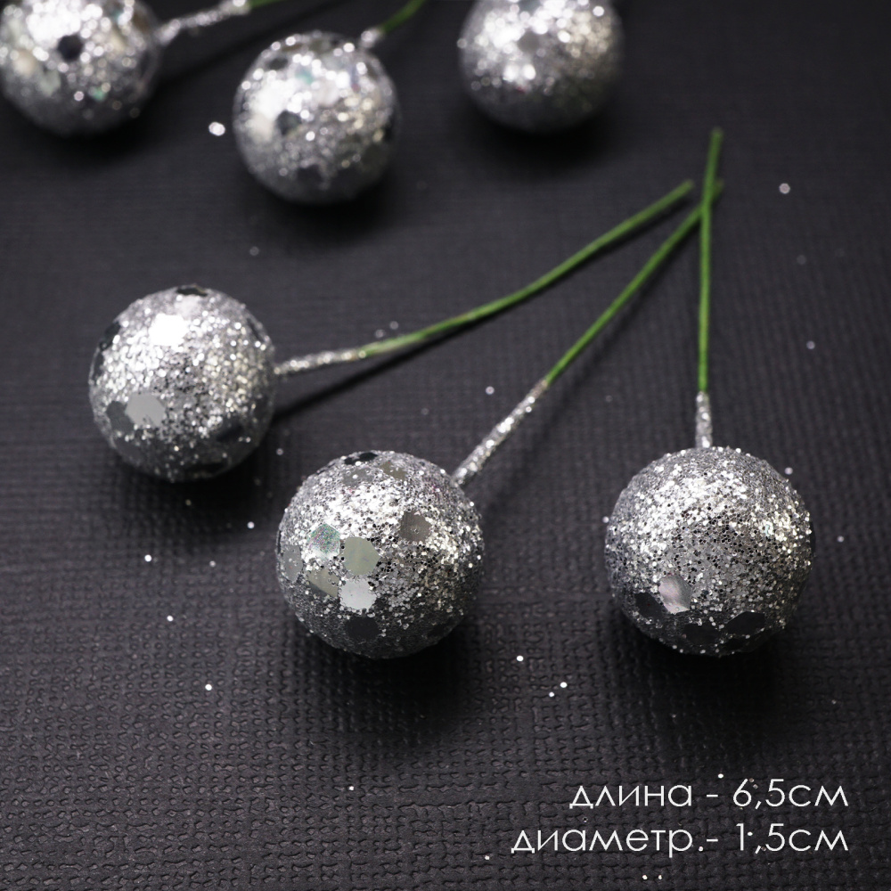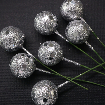 Ягоды на проволоке 6,5см d-1,5см с блестками арт.SF-1288 серебро