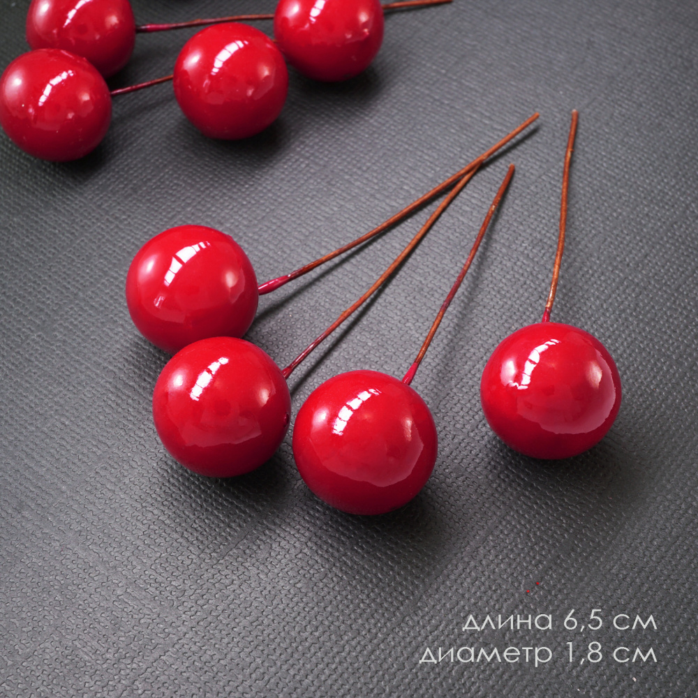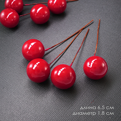 Ягоды на проволоке d- 1,8cм 6,5см арт.G60/30 красный