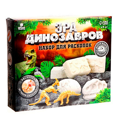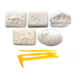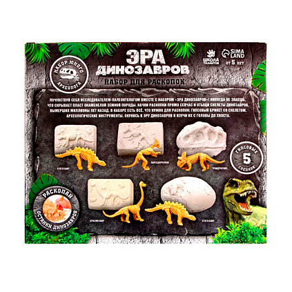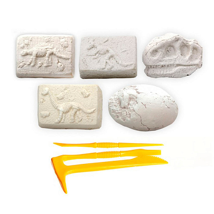 - 5 гипсовых слепков, - археологические инструменты, - скелеты динозавров.