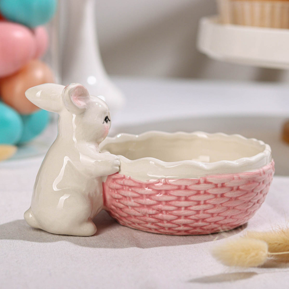 Вазочка доломит "Зайка" 16,5*12см арт.7434244 розовый/белый