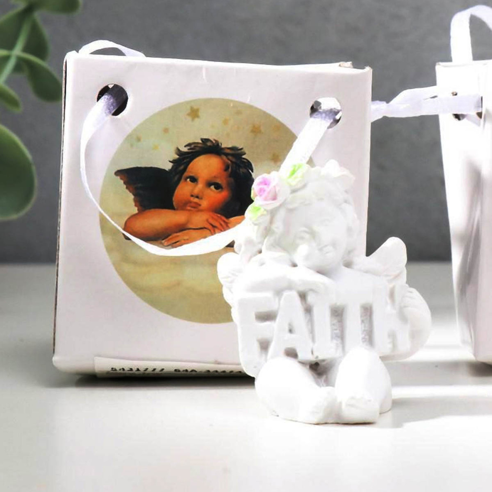 Сувенир полистоун "Ангел с надписью в руках" 4*3см арт.5431777 белый