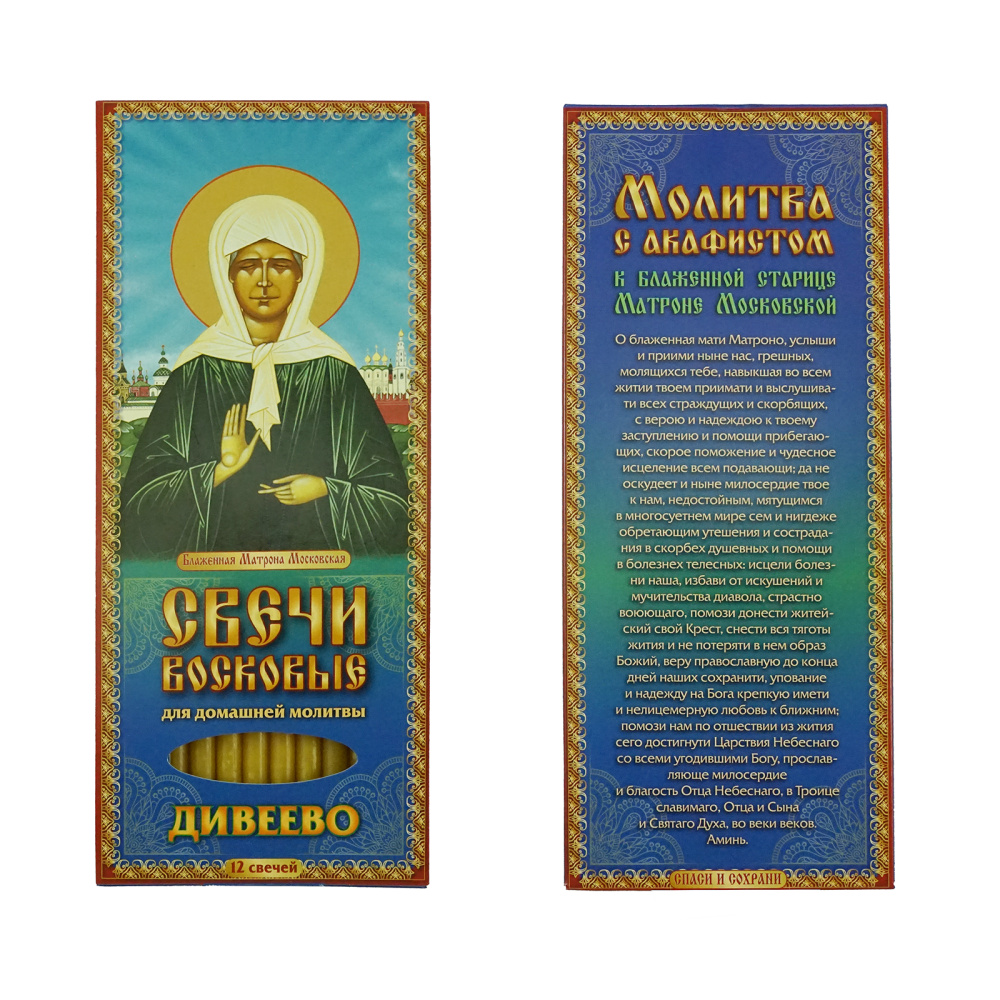 Набор восковых свечей "Дивеево" "Молитва Матроне Московской" 18см d-6мм (12шт)
