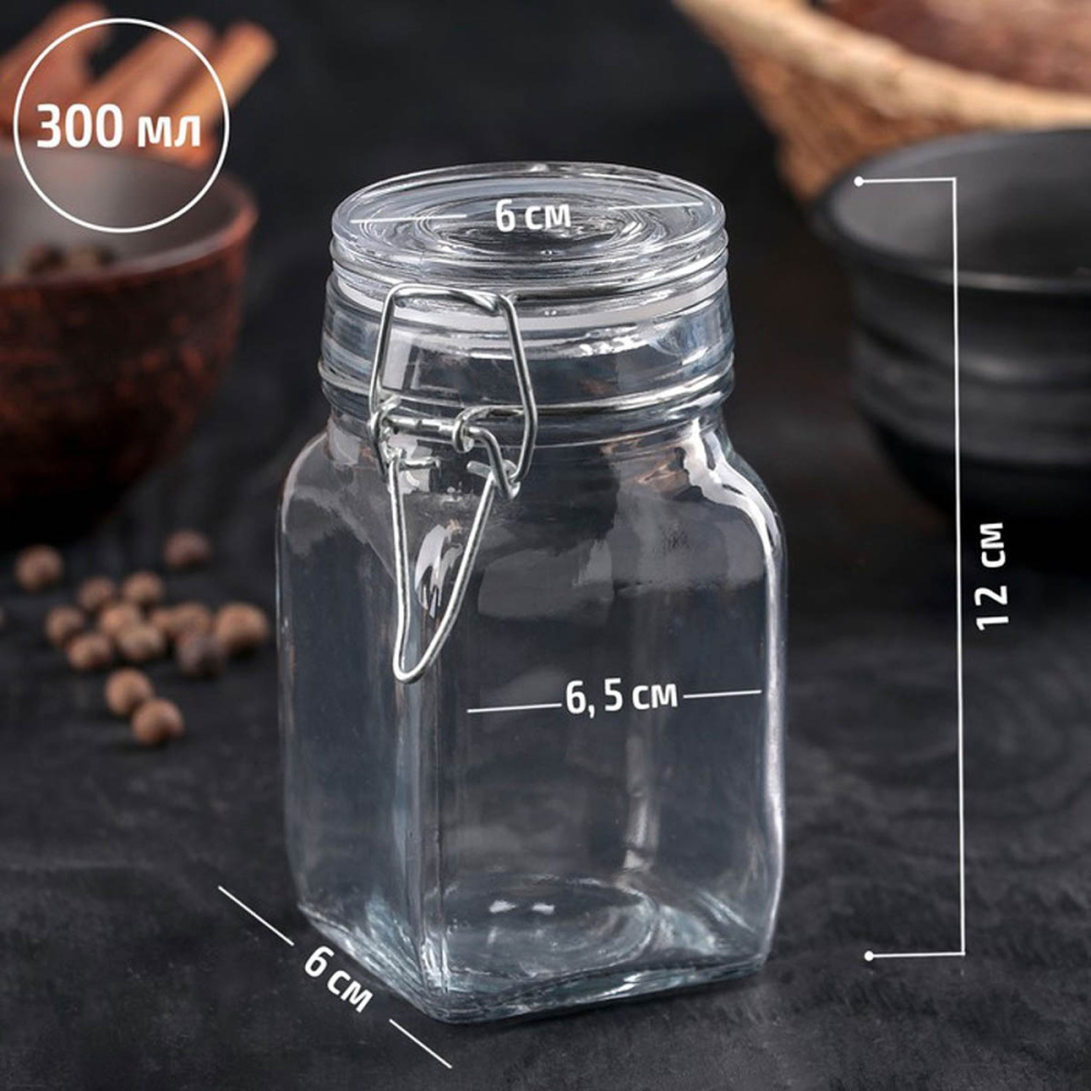 Банка с замком 300мл d-5,5 h-11,5см стекло арт.1701873 прозрачный