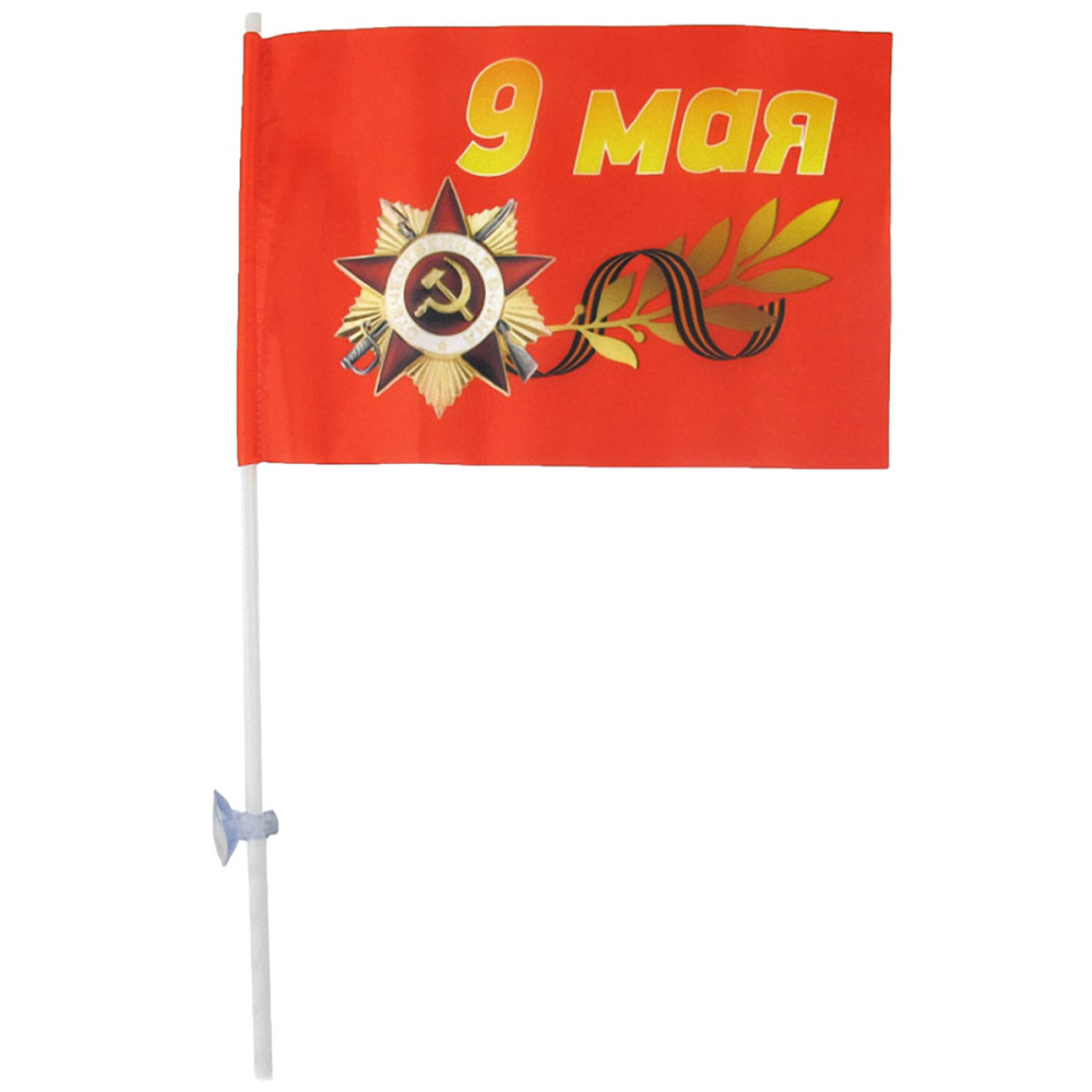 Флаг "9 Мая" 22*15см арт.03 красный с присоской для машин