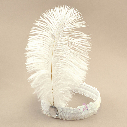Повязка на голову с пером "Карнавальная" 18*21см арт.ФУ-10778 белый/перламутр