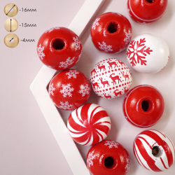 Бусины дерево "Новый год" 16мм арт.ИВ-917 красный/белый (10шт)