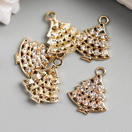 Подвеска металл "Елочка" со стразами 25*22мм арт.4285481 св.золото