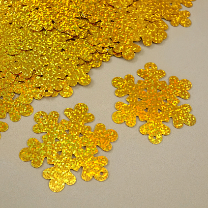 Пайетки-голограмма "Снежинка" 40мм арт.ФУ-3368 золото (100гр)
