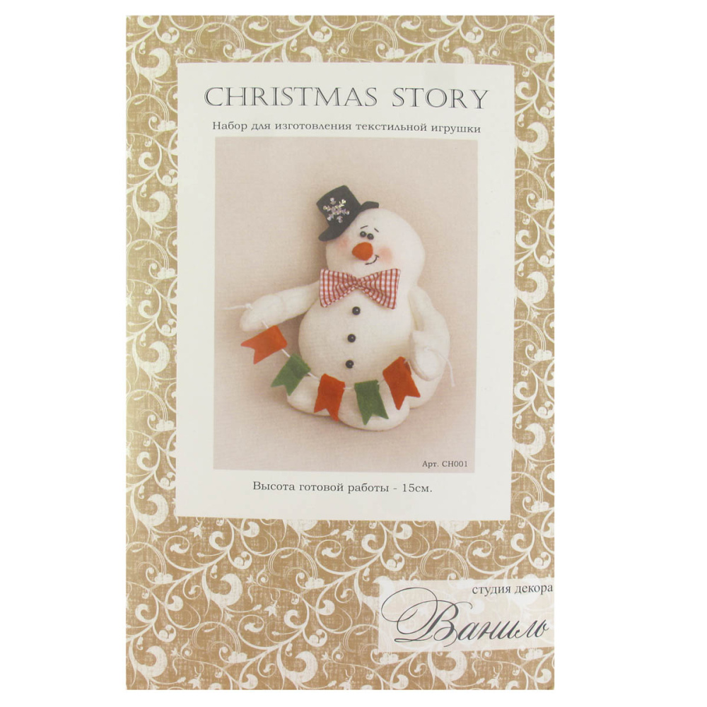 Трикотажное полотно (100% п/э), хлопок, фетр, бусины, шнур вощеный, нитки черные, снежинка, деревянная палочка, выкройка, инструкция.