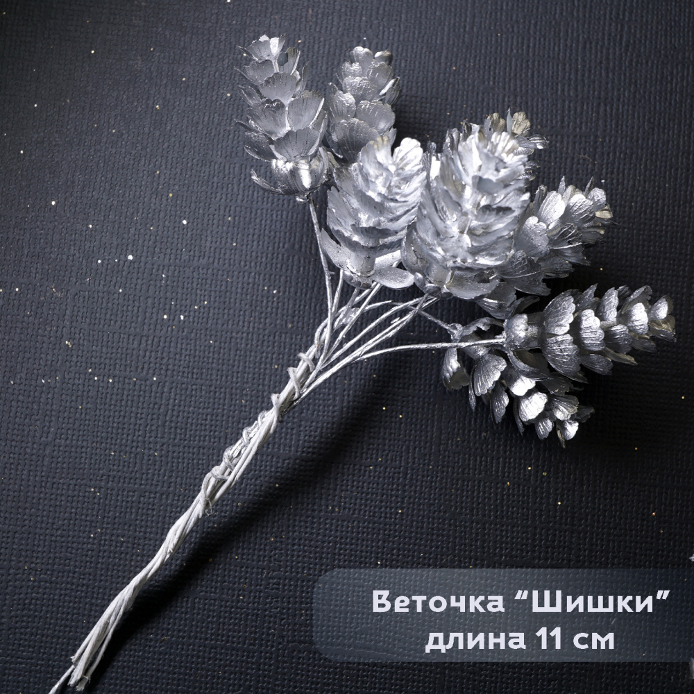 Веточка "Шишки" 11см арт.SF-7339 серебро (10шт)