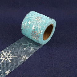 Фатин мягкий 5,5см "Снежинки" арт.SF-5812 голубой/серебро-14