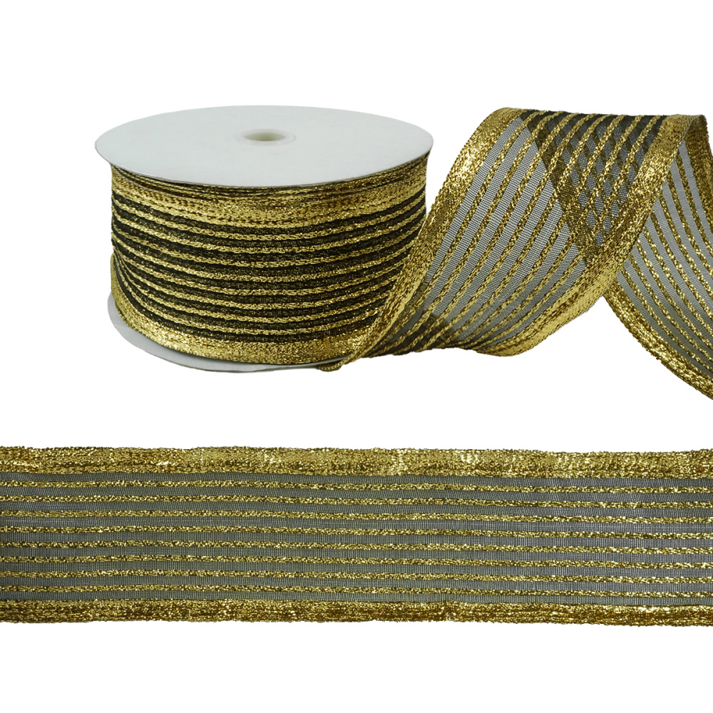 Лента органза 63мм арт.29-306 золото/черный