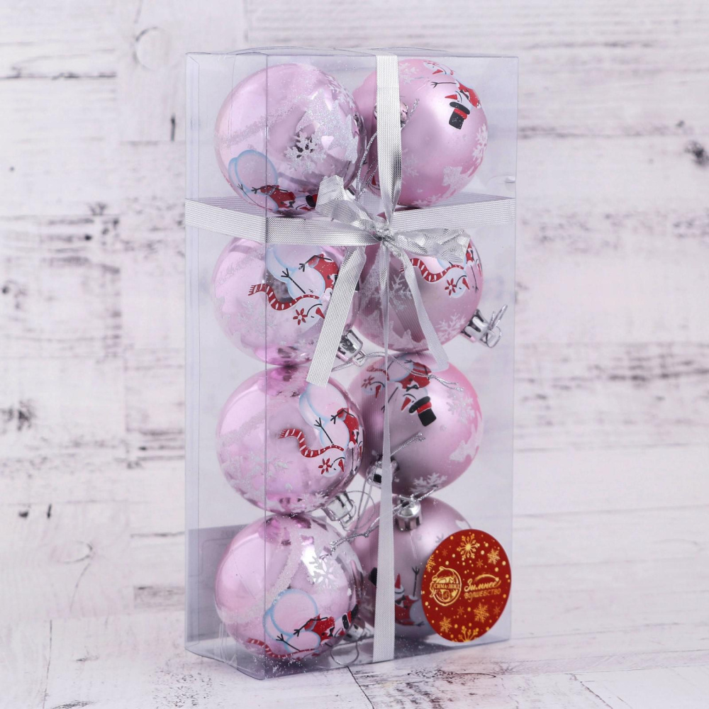 Набор из 8-ми елочных шаров 6см "Снеговики" арт.4941851 розовый