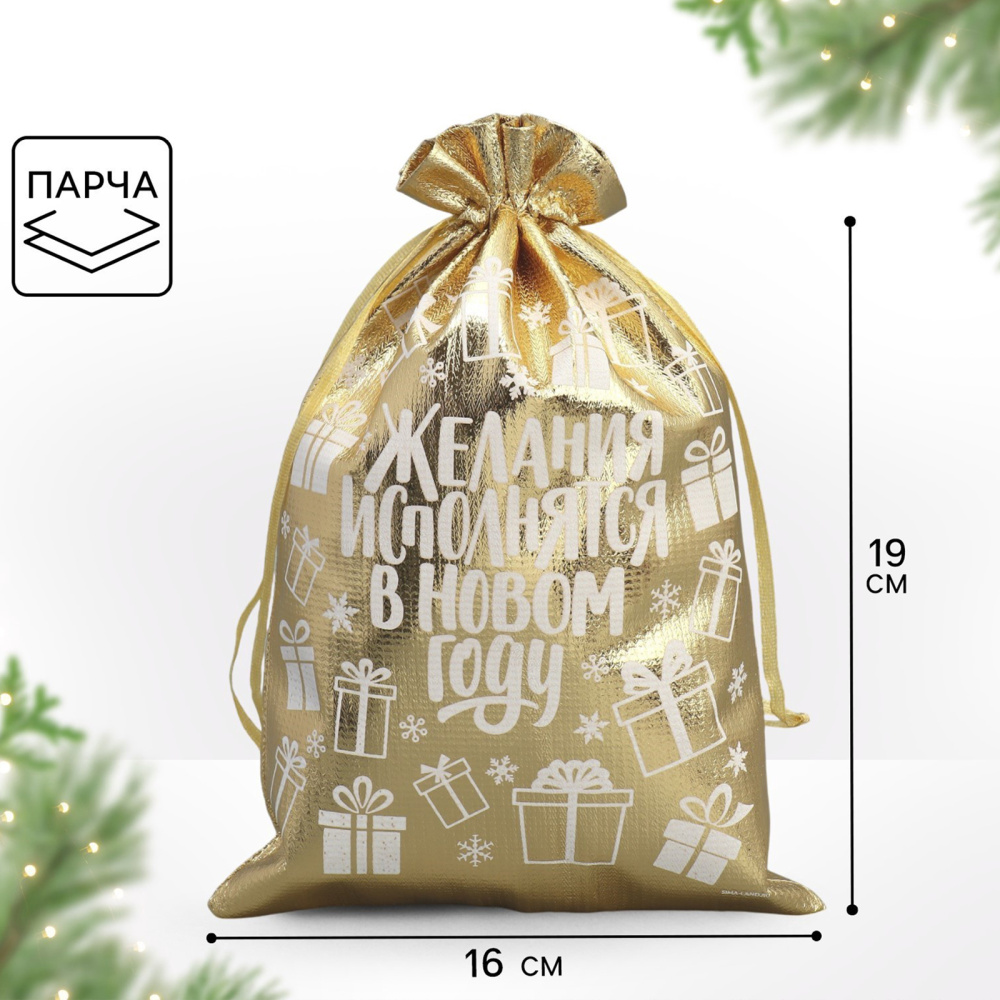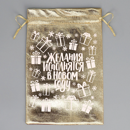 Мешочек подарочный парча "Желания исполняются" 15*24см арт.9612815 золотой