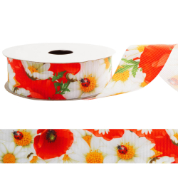 Лента репсовая 25мм "Цветы" арт.SF-1278 белый/розовый