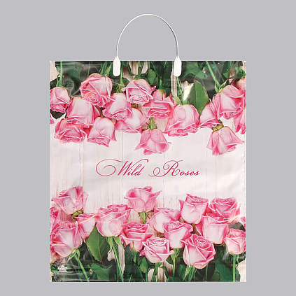 Пакет п/э с пластиковой ручкой 44*40см "Дикие розы" 100мкм арт.2327396