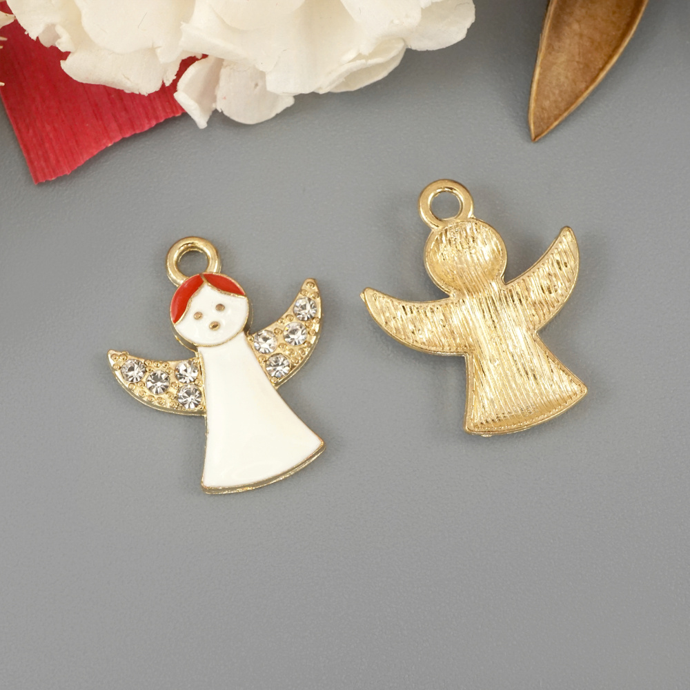 Подвеска "Ангел" 18*21,5мм эмаль арт.ИВ-306 белый/золото