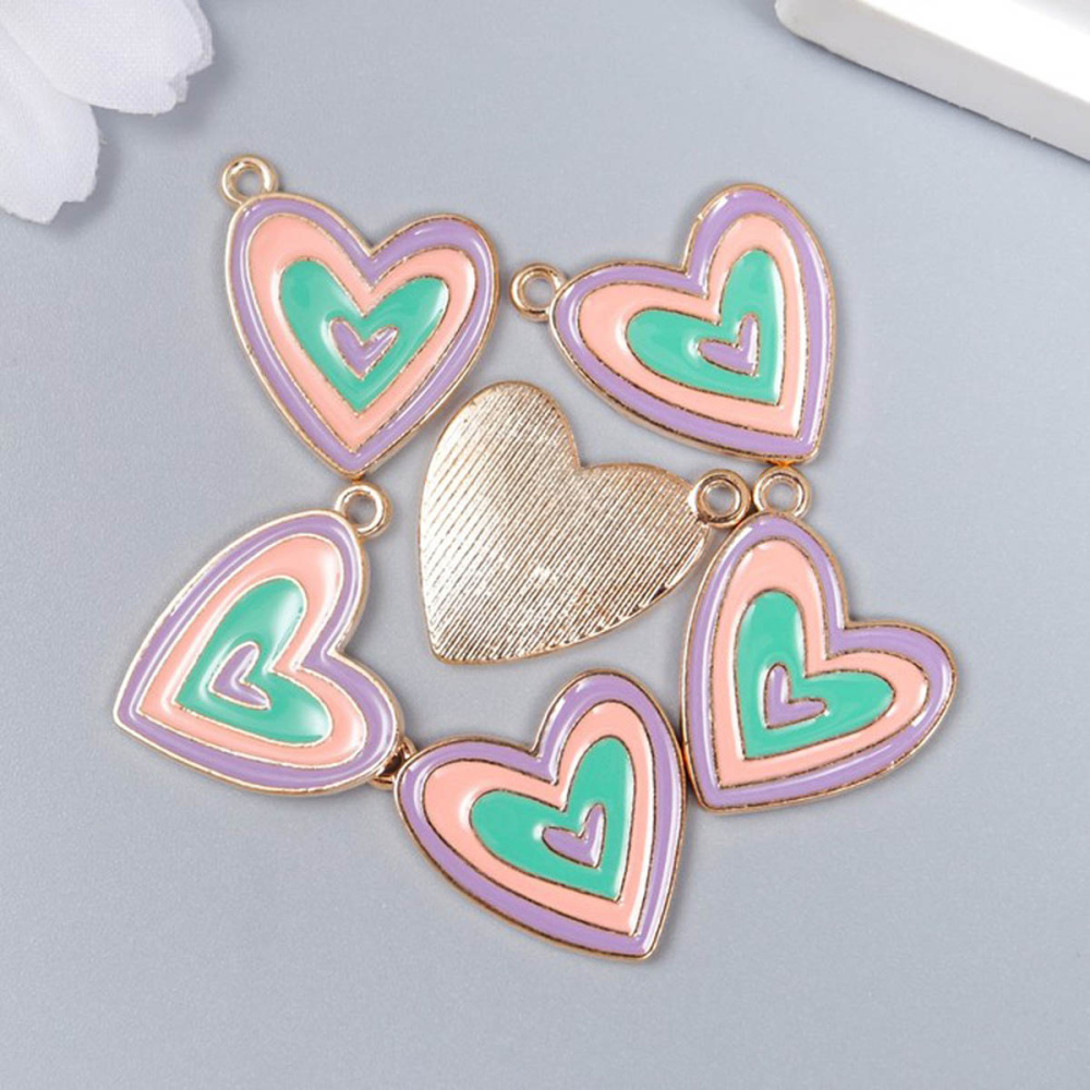 Подвеска эмаль "Сердце" 24*18мм арт.7356022 золото/микс