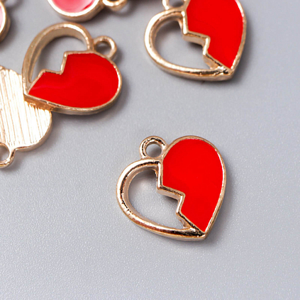 Подвеска металл "Половина сердца" эмаль 15*14мм арт.7356075 золото/красный