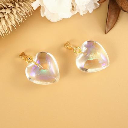 Подвеска стекло "Сердце" лунный камень 16*19мм арт.ИВ-65