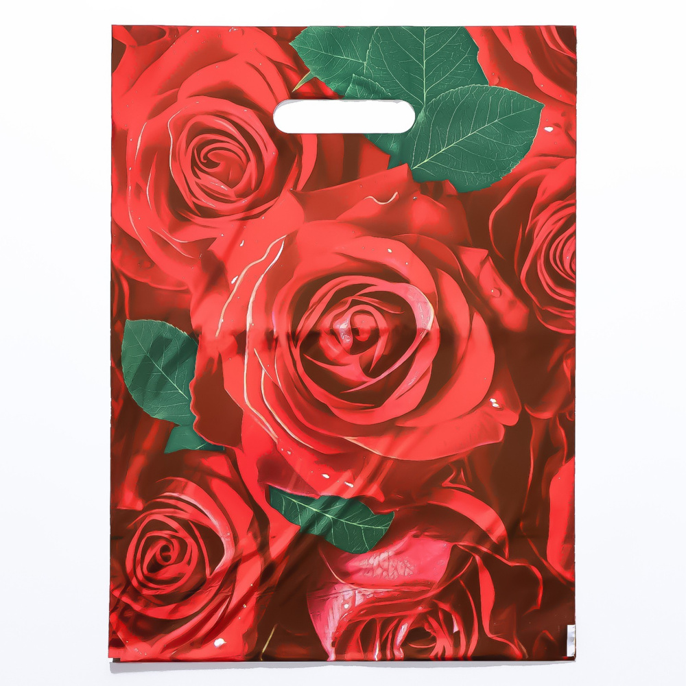 Пакет п/э с вырубной ручкой 40*30см "Алые розы" 50мкм арт.10082852