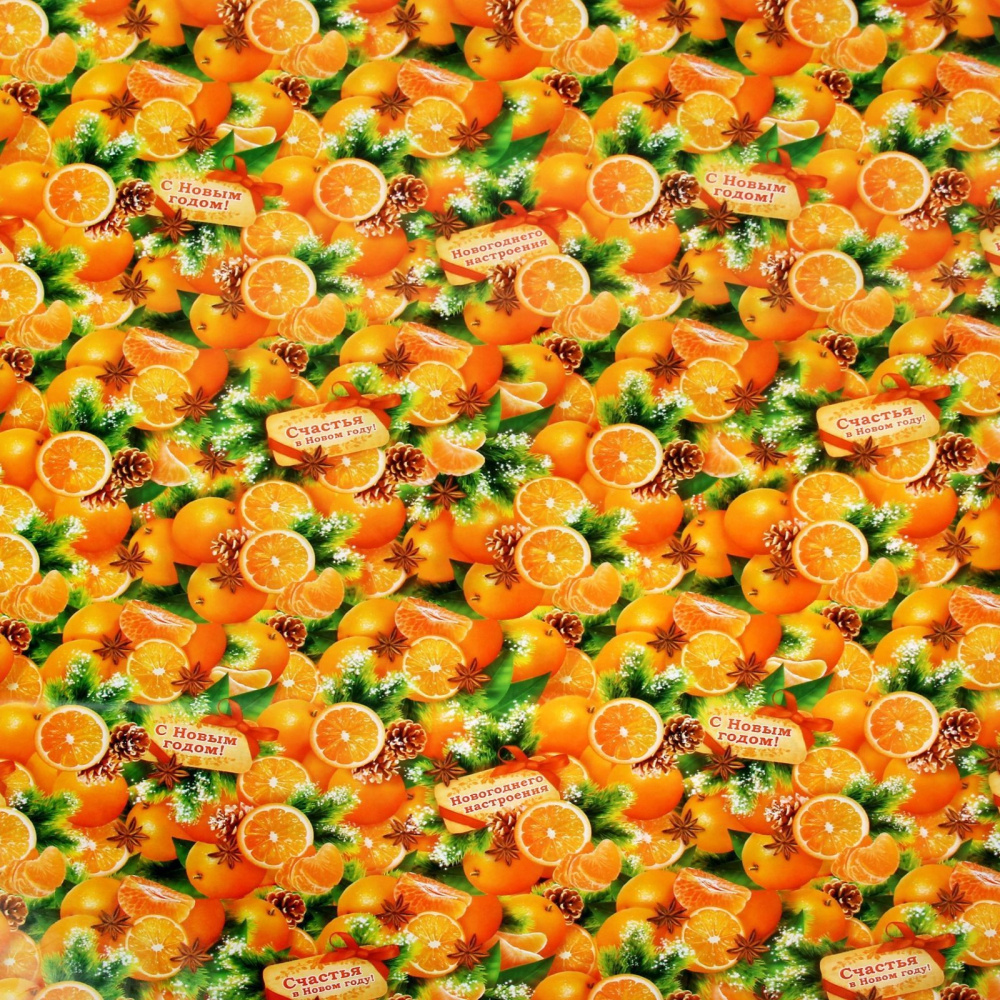 Бумага упаковочная глянцевая "Мандарины" 100*70см арт.1063829