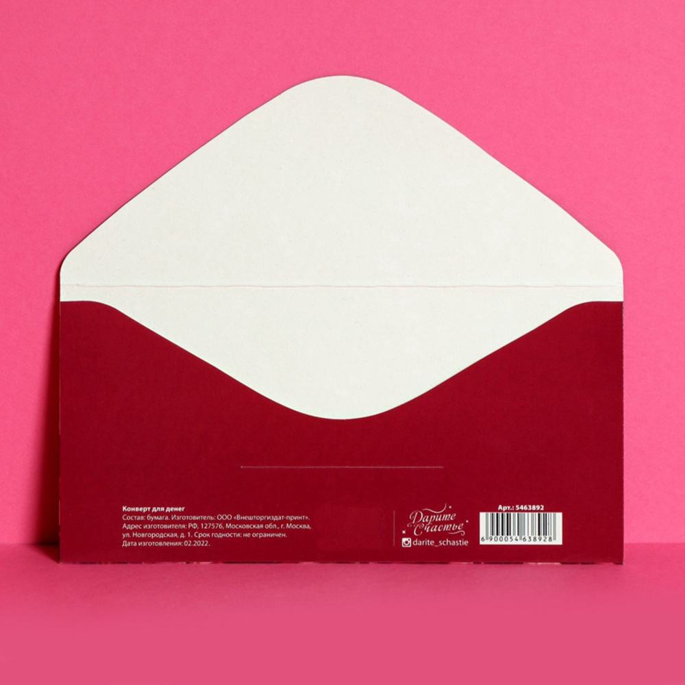 Конверт для денег "Самой прекрасной" 16,5*8см арт.5463892
