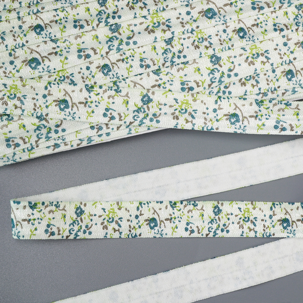 Косая бейка стрейч 15мм "Цветочки" арт.456 ФАСОВКА