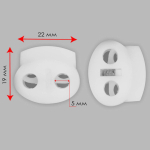Фиксатор 19*22мм отв. 5мм для шнуров белый