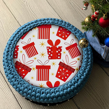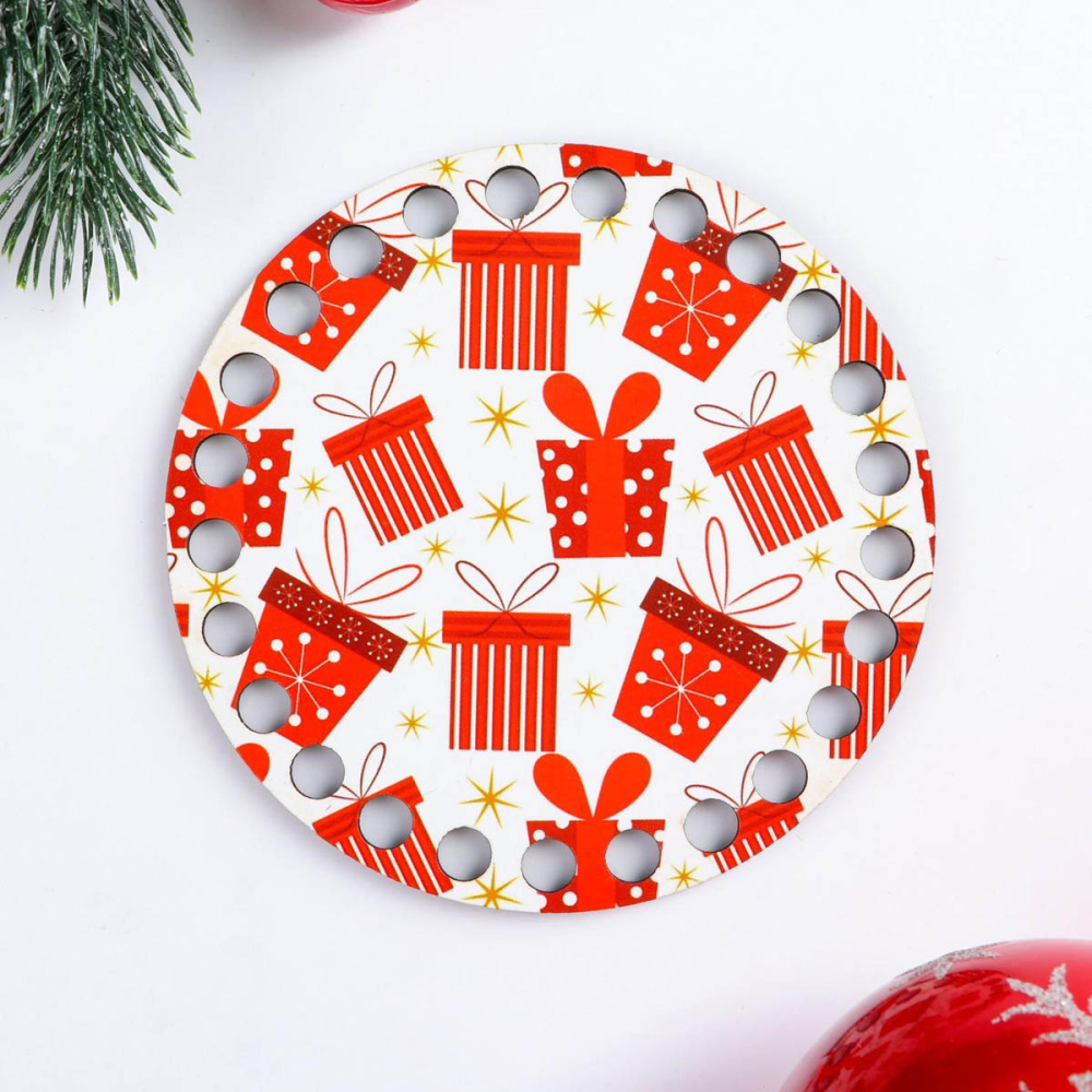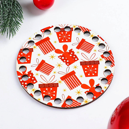 Заготовка для вязаной сумки дерево круг "Крышка. Подарки" 10см арт.5375366