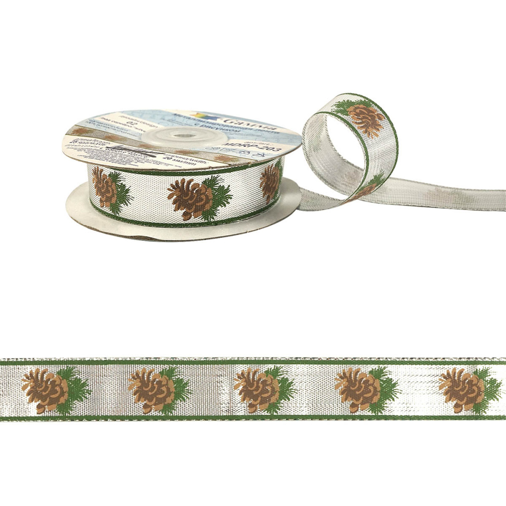 Лента 20мм "Шишки" арт.MDRP-203 серебро