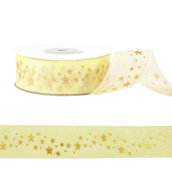 Лента капрон 25мм со звездочками арт.SF-6140 кремовый/золото