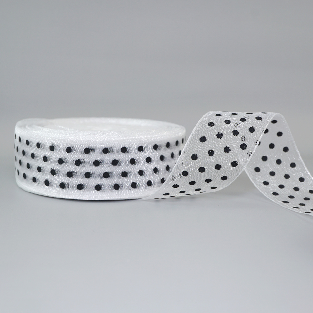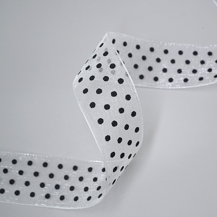 Лента капрон в горошек 25м арт.6784799 белый/черный