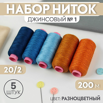 Нитки джинсовые 200м 20/2 арт.9316985 ассорти