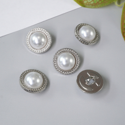 Пуговица "Жемчуг" 15мм ИВ-1139 бел/серебро