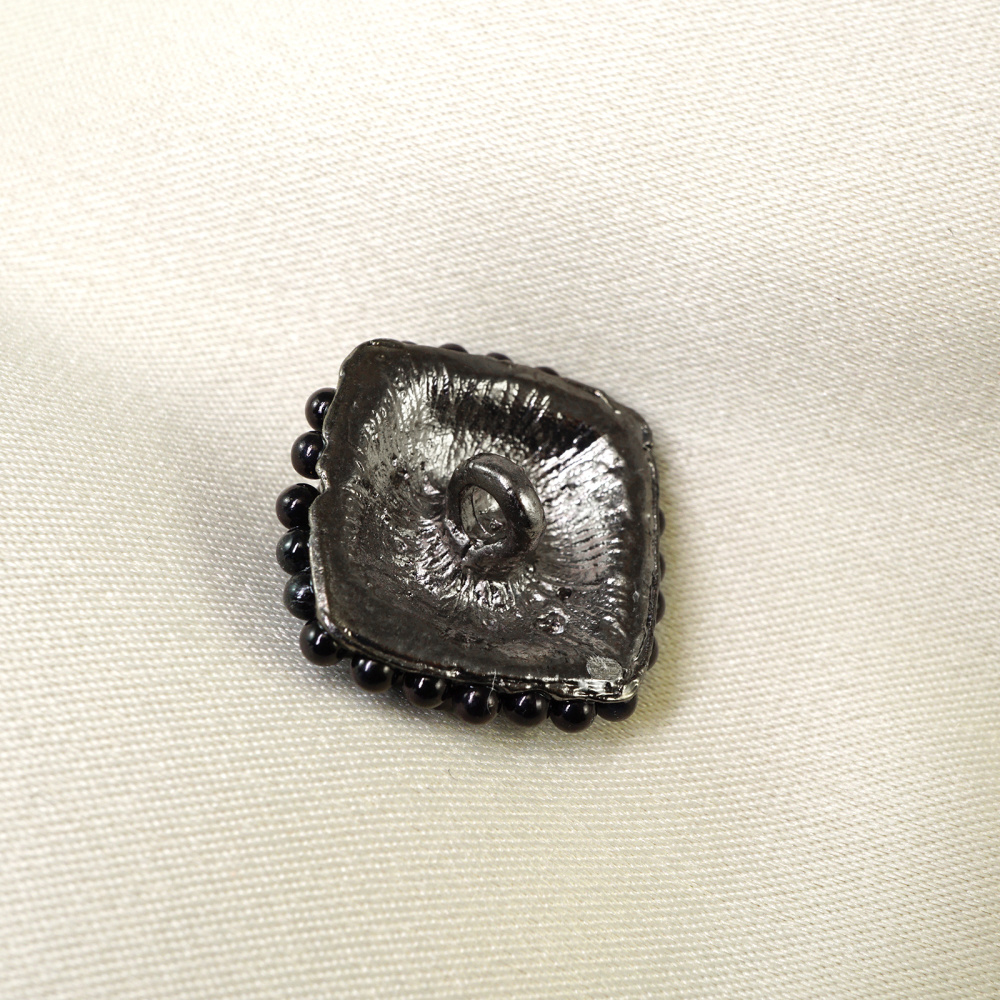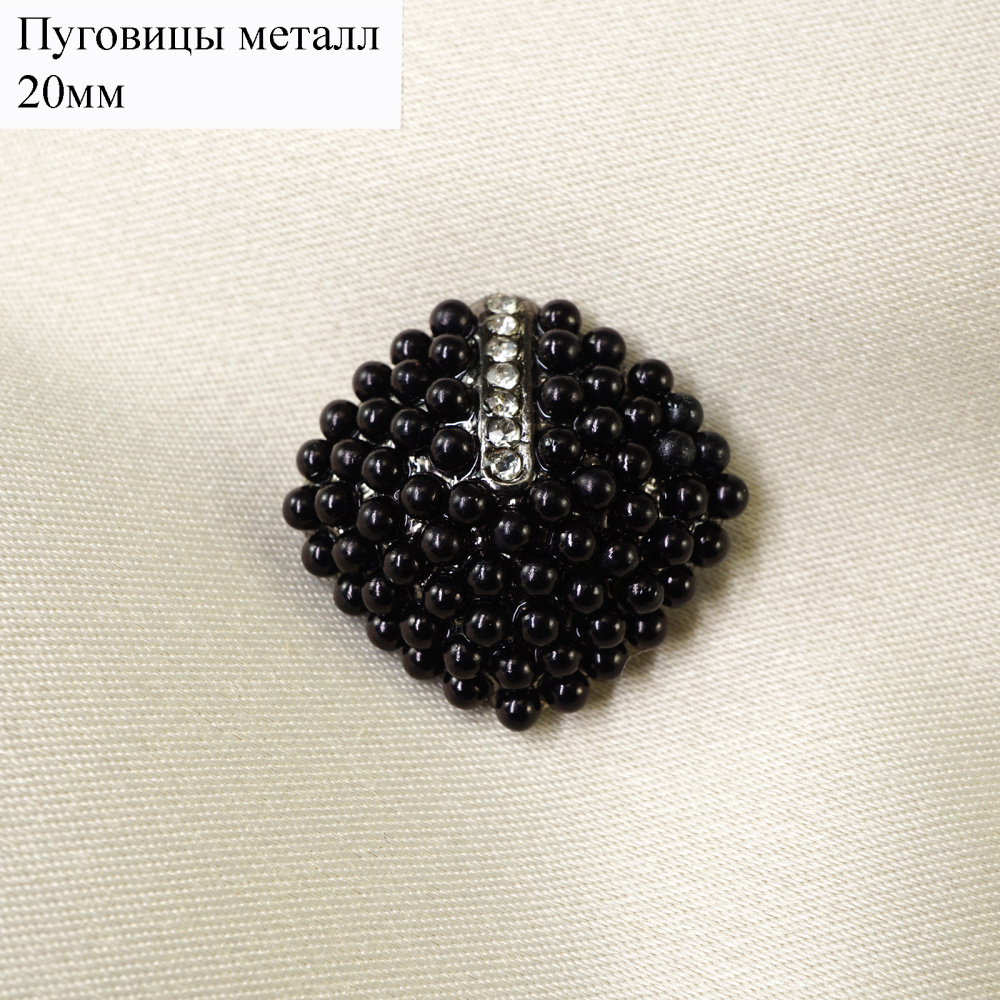Пуговица со стразами и бусинками арт.12707 21мм т.никель/черный