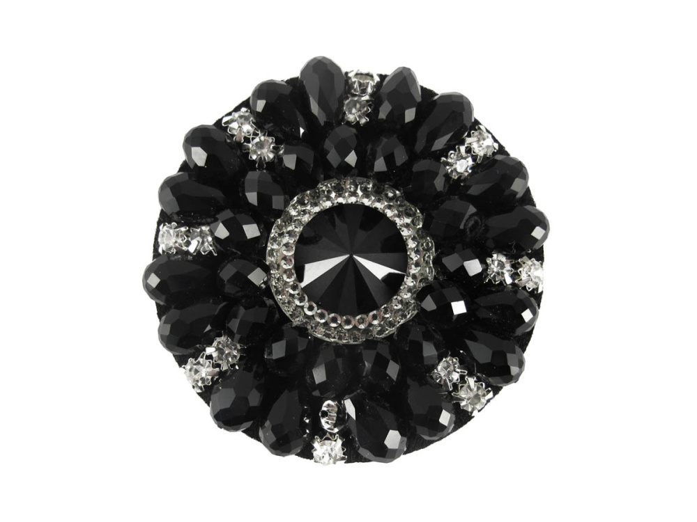 Украшение пришивное 6см с камнями стразами и бусинами арт.417 черный