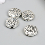 Бусины металл "Солнце" 12*12*4мм арт.9896245 серебро (4шт)