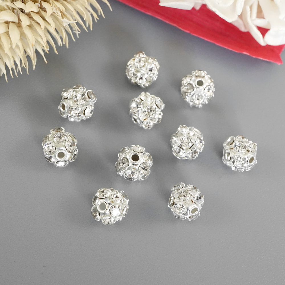 Бусины металл 6мм со стразами арт.55896 серебро (10шт)