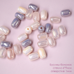 Бусины стекло "Бочонок" 6*9мм ИВ-1099 роз/сер АВ микс (30бусин)